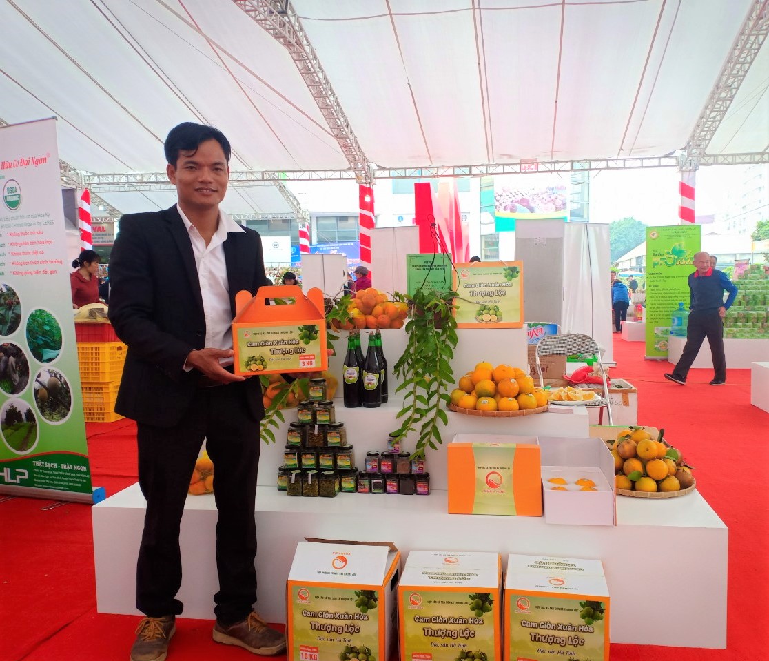 Gian hàng của HTX Trà Sơn xã Thượng Lộc tại khu trưng bày của Lễ trao giải: